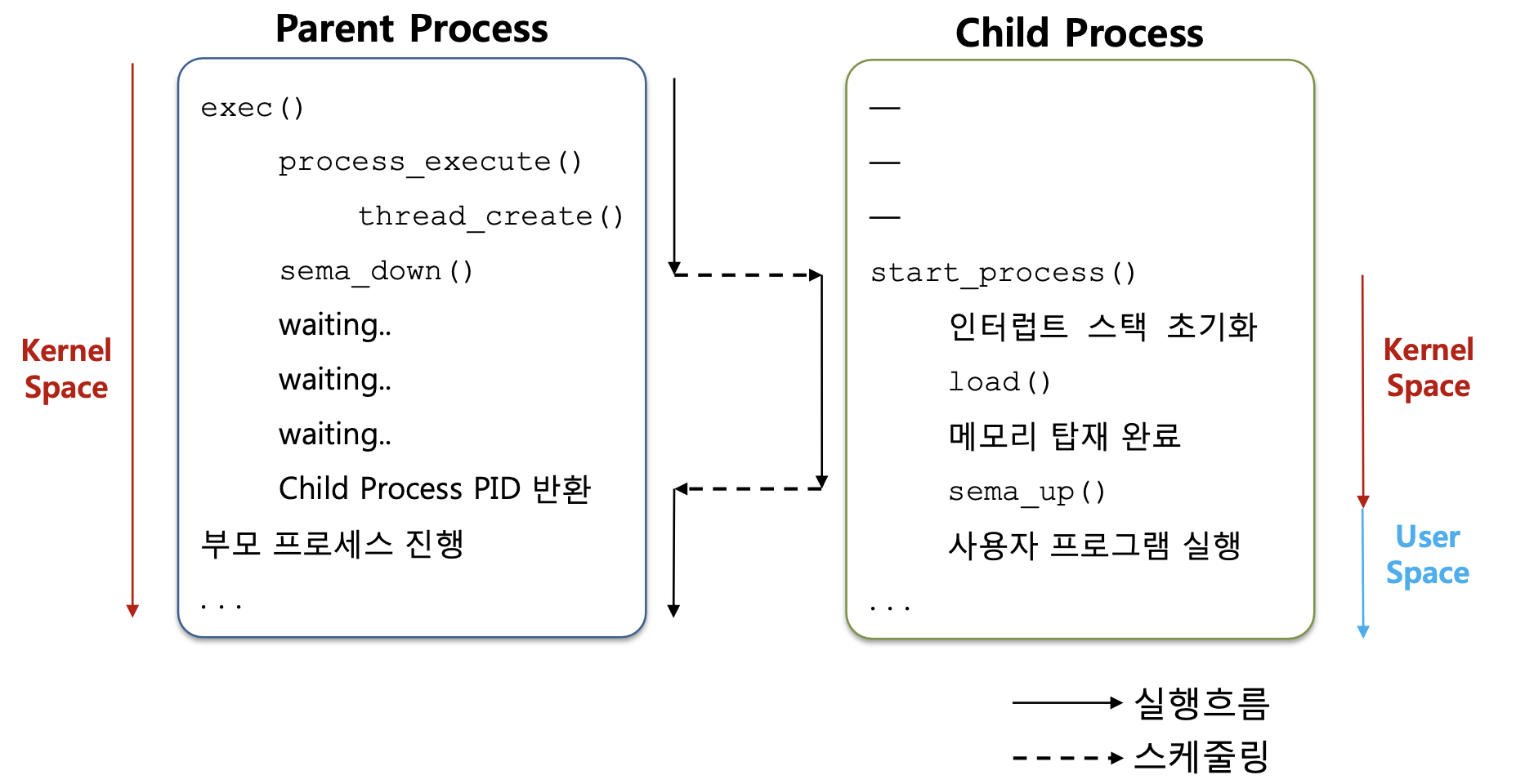 /* 자식 프로세스 생성 대기를 위한 sema down */