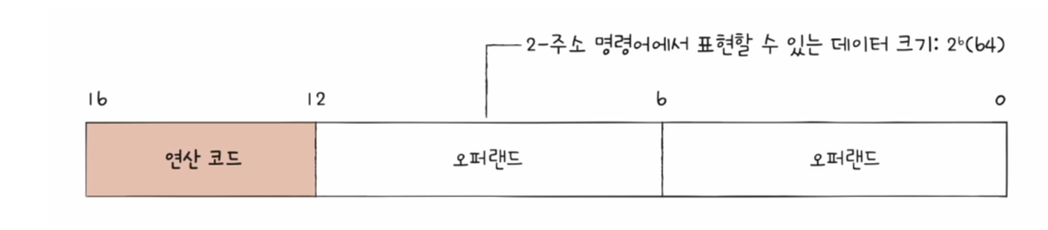 연산 코드에 4bit가 쓰이고, 오퍼랜드가 두 개 있을 경우 각각 6bit씩 가질 수 있다.