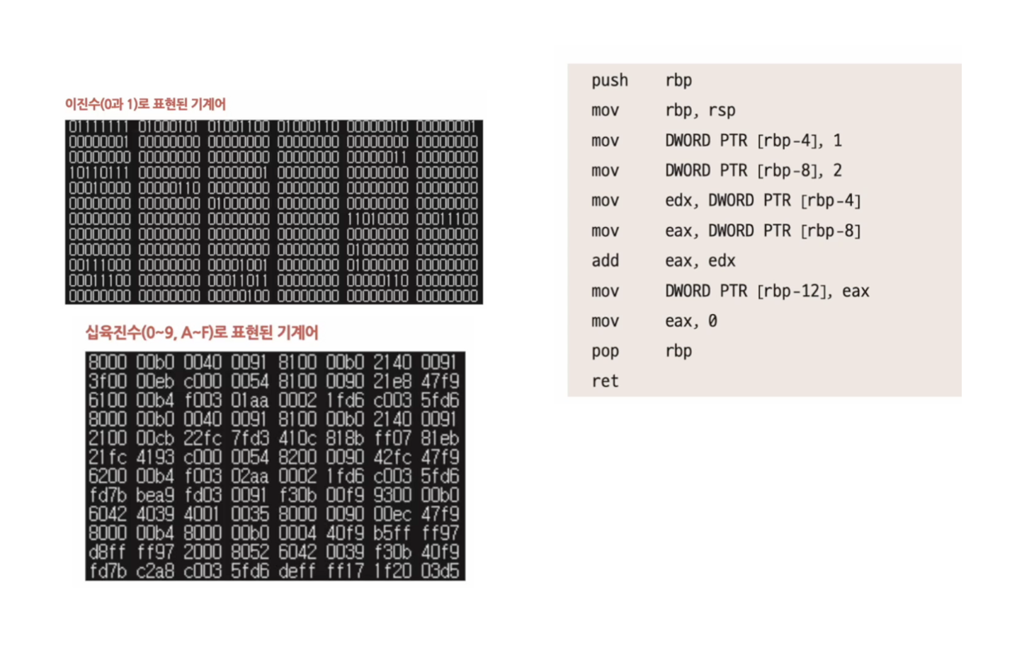 - 저급 언어: 컴퓨터가 이해하고 실행하는 언어