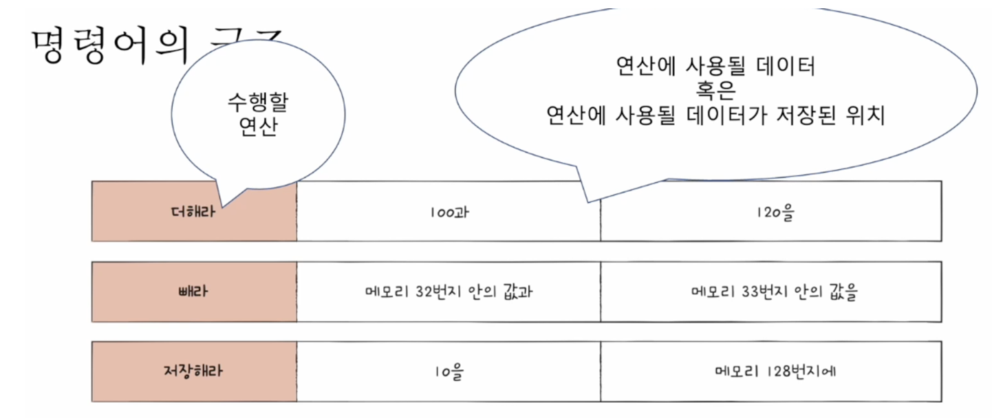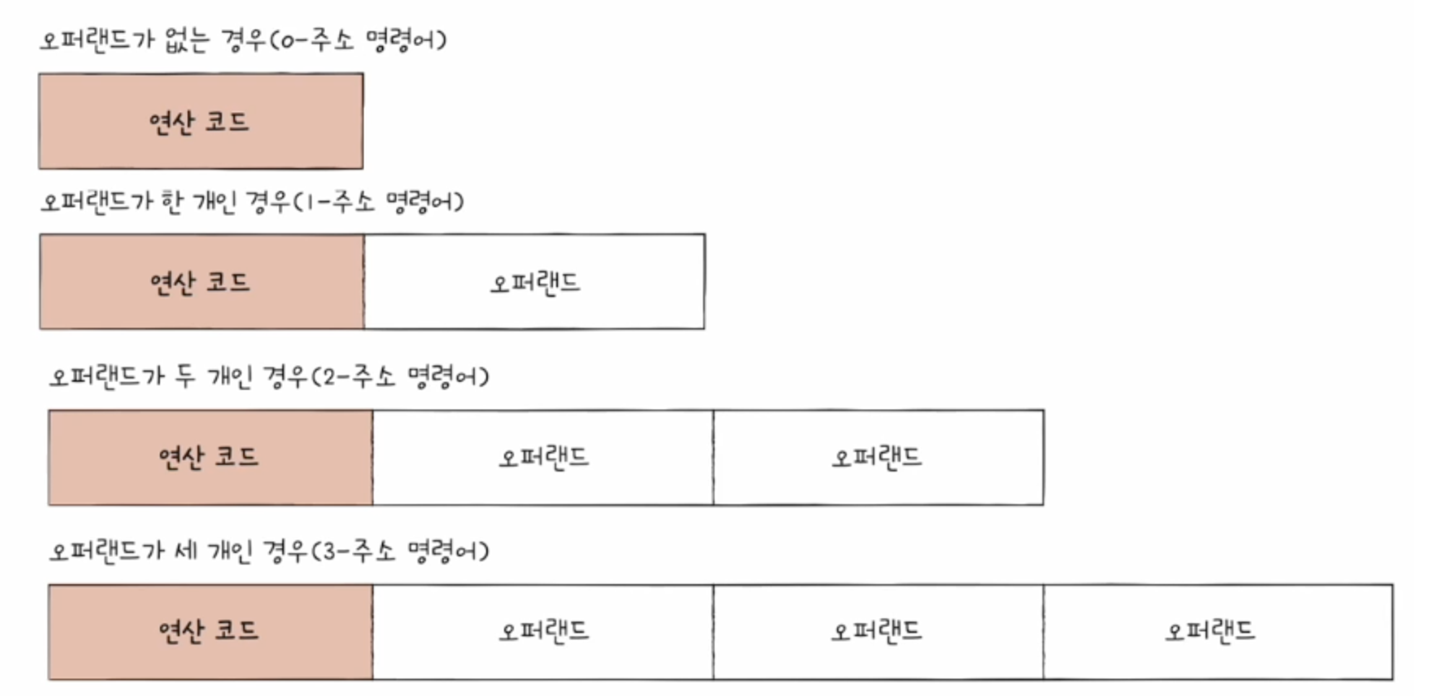 - 이를 일반화하면, 명령어는 연산 코드와 오퍼랜드로 이루어져 있다.