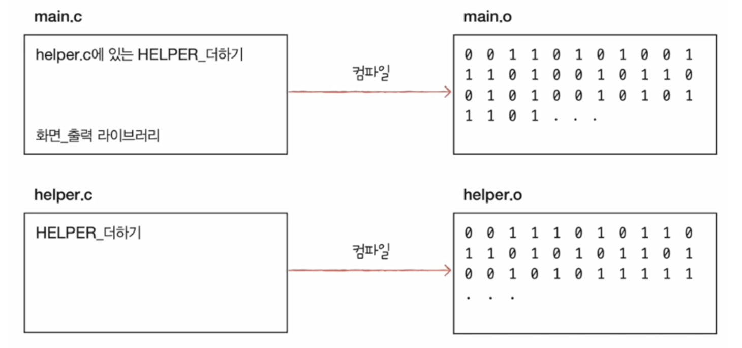main.c만 실행하면 실행되지 않는다. main.c를 실행하기 위해선 helper.c에 있는 내용이 있어야 한다.