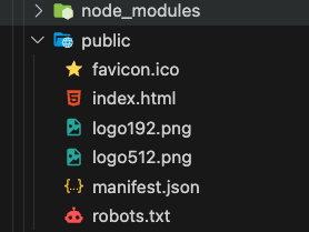 우선 리액트를 설치하면 다음과 같은 디렉토리와 파일들이 생성된다.
