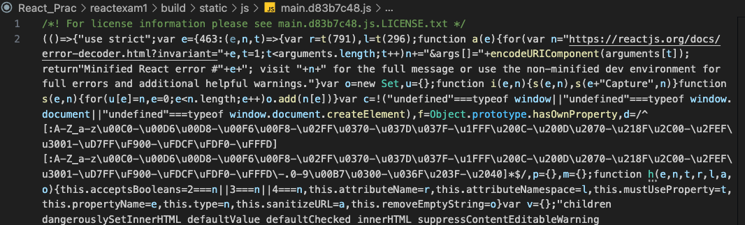 src가 가리키고 있는 /build/static/js의 main.d83d7c48.js 파일을 열어보면,