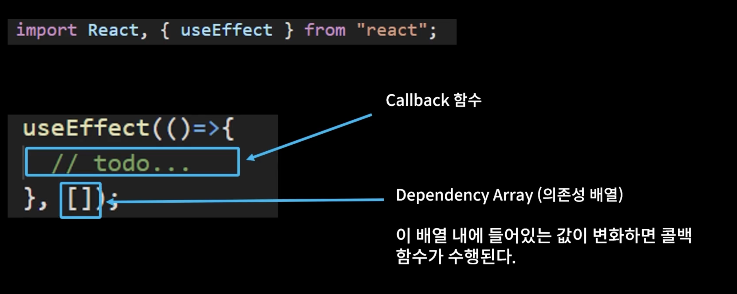 이 Deps 안에 있는 값 중 하나라도 변화하면 첫번째 파라미터인 콜백함수가 계속 수행된다.