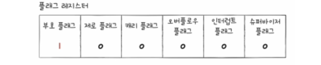 : 플래그들은 플래그 레지스터라는 특수한 레지스터에 각각 저장된다