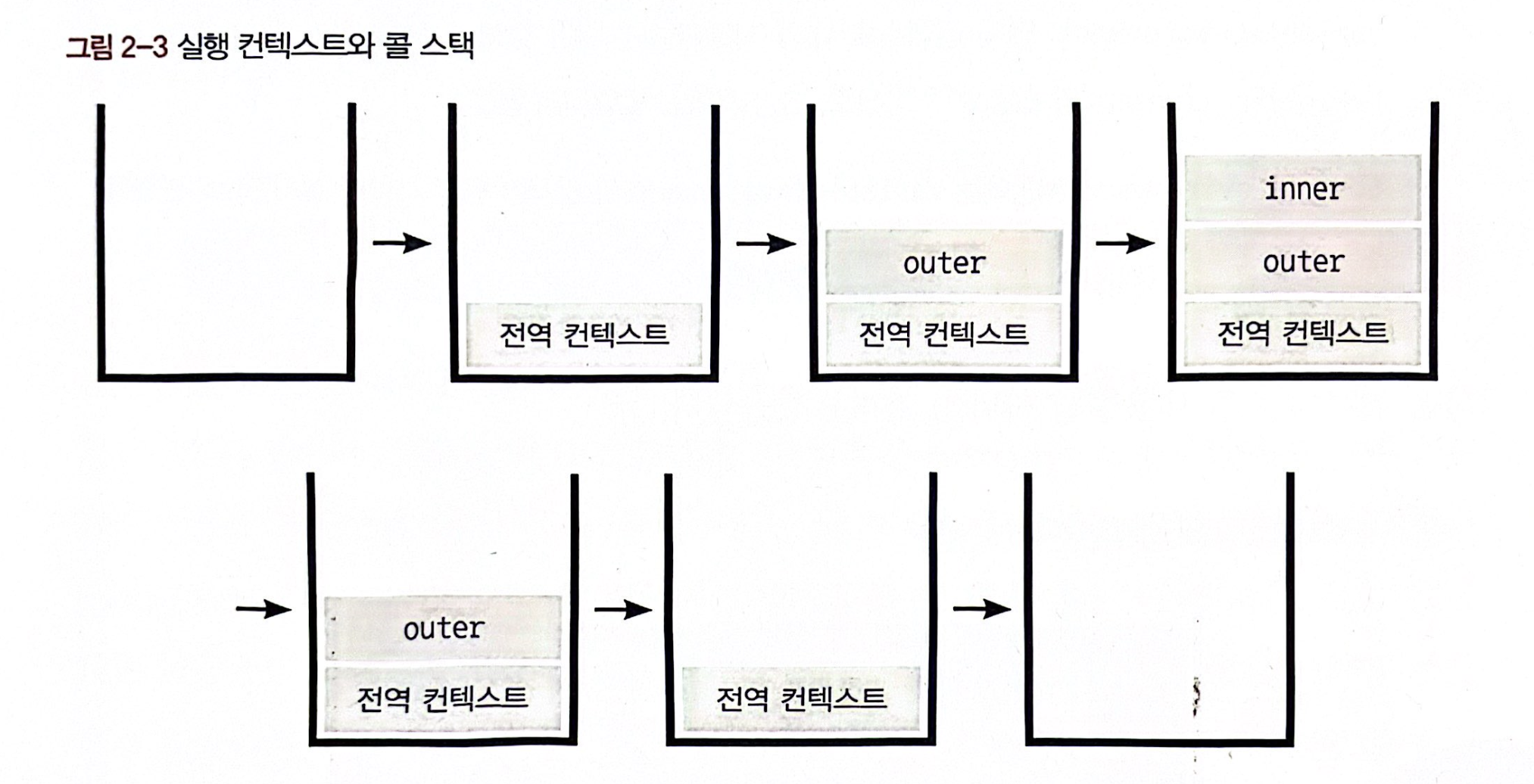 - environmentRecord(환경 레코드): 현재 컨텍스트 내의 식별자들에 대한 정보 -> 호이스팅과 관련