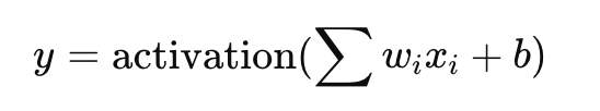 - 구조: 입력(feature)들을 가중치(weight)와 곱한 후, 결과를 합산하고, 활성화 함수를 통해 이진 출력(예: 0 또는 1)을 생성.