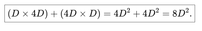 LayerNorm 등까지 세부적으로 정확히 더하면 약간 더 많아지지만, 대략 12D^2 정도로 잡으면 간단히 근사할 수 있다.