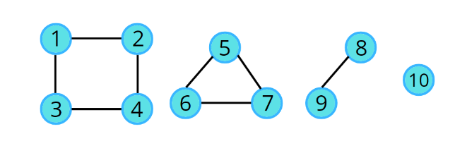 이 그래프는 싱글 노드인 (10)까지 포함해서 총 4개의 연결요소로 이루어진 비연결 그래프라고도 볼 수 있다.