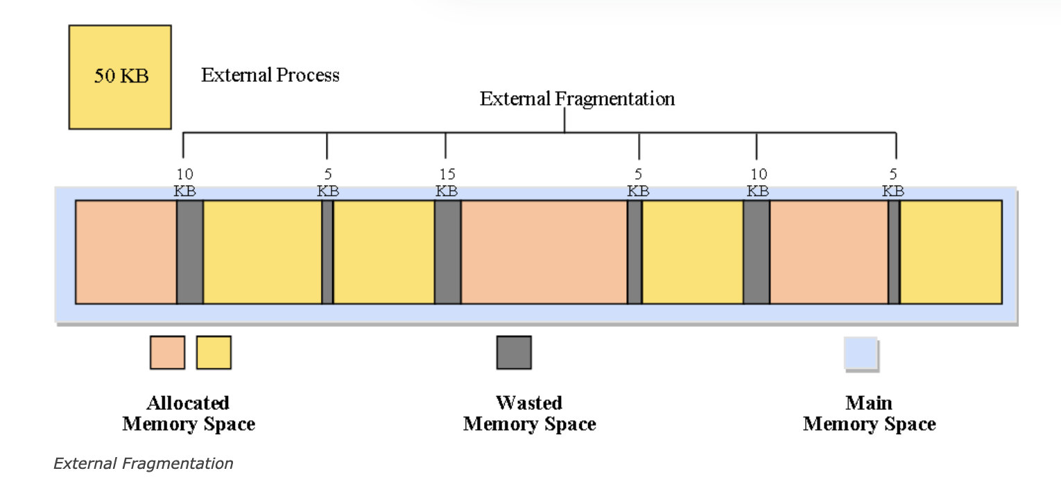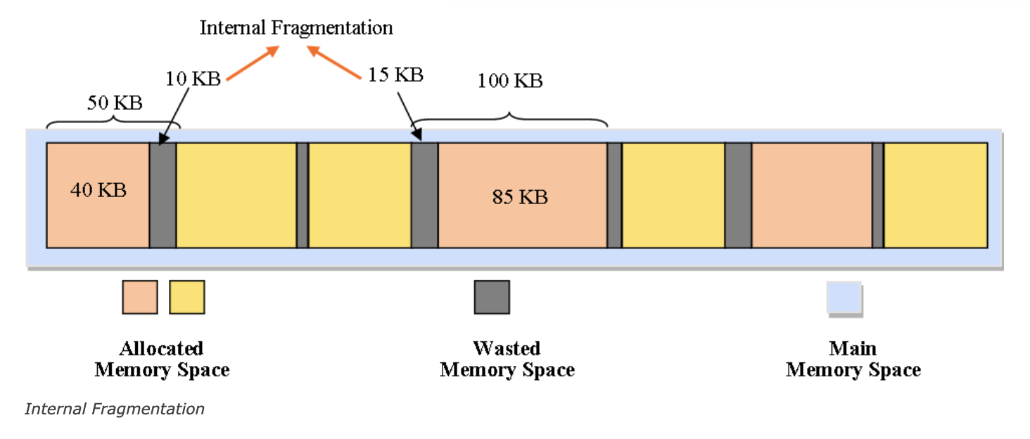 단편화는 두 가지 유형으로 나뉜다: 1) 내부 단편화, 2) 외부 단편화