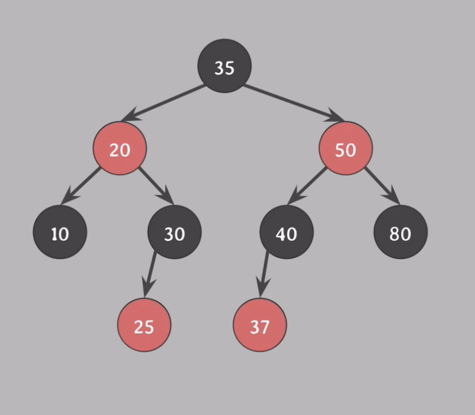 - 20 삭제시 red(25의 색) 삭제, 35 삭제시 red(37의 색) 삭제, 50 삭제시 black(80의 색) 삭제