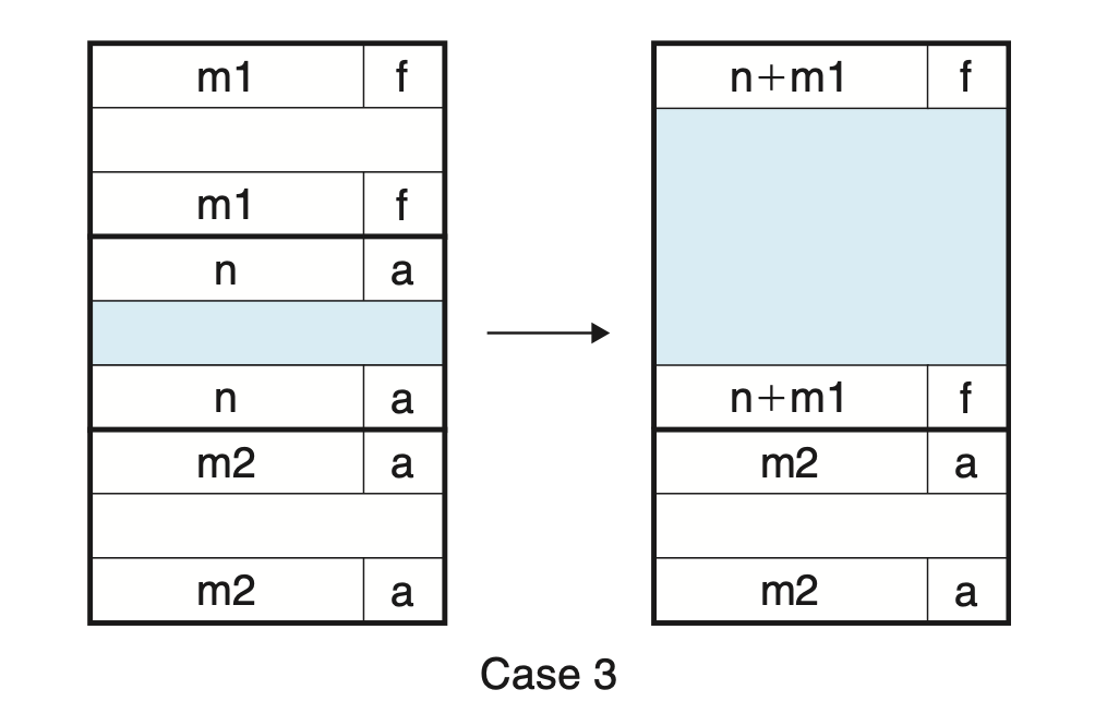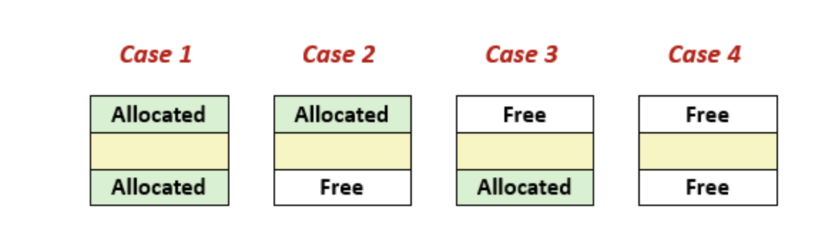 - 물리적으로 인접한 free 블록들을 연결해서 더 큰 free 블록으로 만든다.