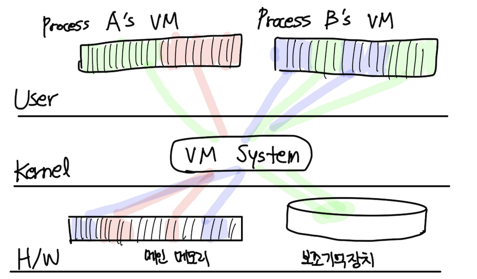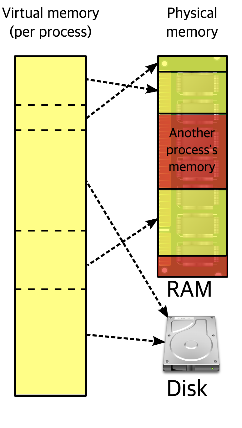- 가상 메모리는 작은 메모리 chunk를 ‘페이지’라는 단위(4kb~2mb)로 관리함으로써, 메모리 공간을 더욱 효율적으로 할당하고 재사용할 수 있게 한다. 이는 프로세스가 요구하는 메모리의 정확한 양을 할당받을 수 있도록 하여, 메모리의 낭비를 줄인다.