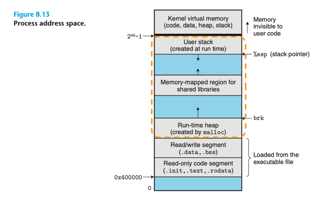 다시 가상 메모리로 돌아와서, 각 프로세스는 가상 메모리를 부여받는다고 했는데 프로세스 입장에서 바라본 가상 메모리는 어떤 모습일까?