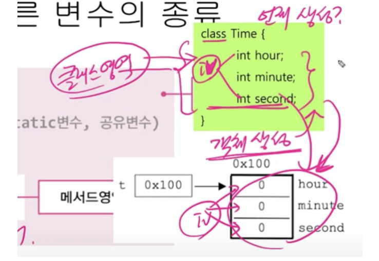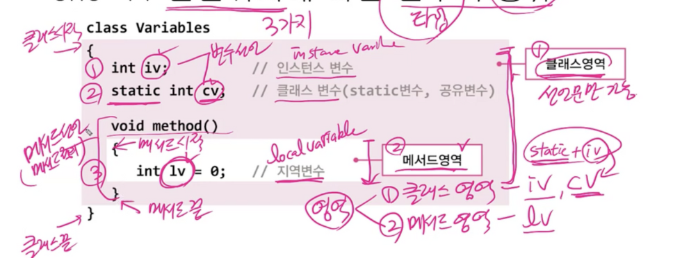 | iv (인스턴스변수) | - 클래스 영역에 속함 |